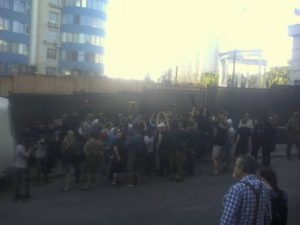 Активісти також мали намір гноєм закидати будівлю консульство, але правоохоронці, які перебувають на місці, цьому завадили. Також, за інформацією активіста Сергія Стерненка, на місце прибули дипломати — представники Польщі та Китаю.