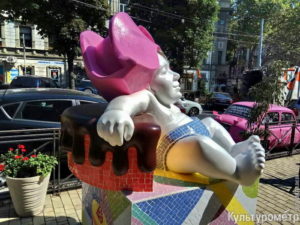На улице Бунина на пересечении с Пушкинской установили памятник сладкоежке. Он имеет почти два метра в высоту и украшен мозаикой.