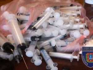 В ході санкціонованого обшуку за місцем тимчасового проживання у правопорушника було виявлено та вилучено полімерний пакет з наркотичною речовиною – метадоном загальною вагою 289 г, медичні шприци об’ємом 20 мл з речовиною коричневого кольору, пластикову пляшку з концентратом опію об’ємом 200 гр та 1 літр ангідриду.