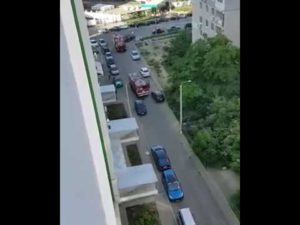 Инцидент случился внутри жилого комплекса «Острова». Девушка-очевидец сняла на камеру пожарную машину, которая отчаянно сигналила, пытаясь дозваться хоть кого-нибудь из хозяев машин.