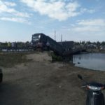 Большегрузный автомобиль MAN разрушил понтонный мост через Ингул у села Пересадовка Витовского района. Этот многострадальный мост систематически уходит под воду