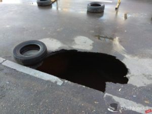 На улице Канатной в Одессе прямо на проезжей части образовалась дыра.
