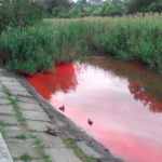 В социальной сети появились фотографии реки, протекающей в районе автовокзала в Запорожье. Река приобрела неестественный цвет. Пользовательница Фейсбука сфотографировала воду