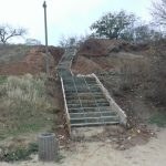 Рабочие сооружают бетонную лестницу на приморском склоне, ведущую к т.н. “собачьему пляжу”, рaсположенному мeжду “Дельфином” и Чeрноморским яхт-клубом в районе