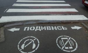 В Одессе появились новые предупредительные знаки перед пешеходными переходами. Огромными знаками перечеркнутый мобильный и перечеркнутые наушники снабдили пешеходные зебры с