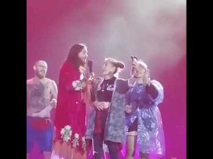 Всемирно известный актер и фронтмен группы Thirty Seconds to Mars Джаред Лето удивил поклонников во время своего концерта в Киеве.