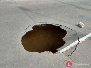 На улице Львовской снова провалился асфальт. Об этом сообщил корреспондент «Пушкинской» с места происшествия.