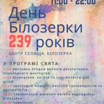 19 жовтня Білозерка святкуватиме 239 років! Запрошуємо всіх мешканців та гостей селища на свято. У програмі: 11:00 Виставка-продаж виробів декоративно-прикладного