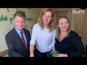 Ректор додає відео, на якому можна побачити інтерв’ю, яке взяли студенти у американського професора кафедри бізнесу і адміністрування Державного Університету штату Нью-Йорк в Потсдамі Грегорі Гарднер. Молодь одночасно навчається і пробує свої сили у справжній журналістиці. Така можливість в них виникла завдяки проекту StudTV, який працює у виші вже кілька місяців.