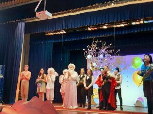 Відома історія про створення світу та кохання, продемонстрована з часткою іронії та гумору, заграла на сцені районного Будинку культури новими фарбами. Особливе місце у виставі посіли найпрекрасніші почуття, які зародилися з появою людини і до цього часу не згасли в нас.