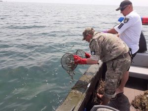 Минулої суботи, 13 червня, працівники відділення поліції в порту «Херсон» відпрацювали акваторію Азовського моря. Під час рейду у водах Утлюцького лиману поліцейські виявили залишені браконьєрами сітки та 438 пасток підйомних, в які вже впіймалися риби видів бичок, калкан, зеленушка плямиста, лобань.