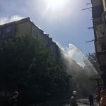 Палає весь дах багатоповерхівки по вулиці Букіна. Стоїть страшний стовп диму, навколо зібрались новокаховчани, приїхала швидка допомога, працюють пожежники.