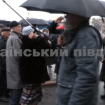 Тарифний пікет під дощем проходить під стінами Херсонської облдержадміністрації. Доєднались до нього і підприємці, які представляють інтереси #Save_ФОП. Головною вимогою