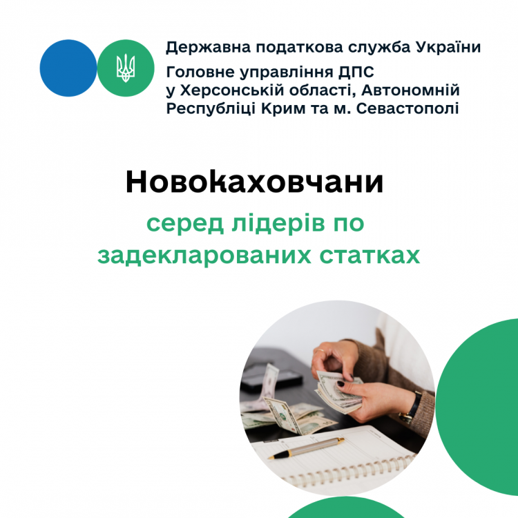 За даними управління податкового адміністрування фізичних осіб Головного управління ДПС у Херсонській області, Автономній Республіці Крим та м. Севастополі друге місце за обсягами отриманих і задекларованих тогорічних доходів на Херсонщині займає новокаховчанин, який одержав прибутки у вигляді дивідендів з Республіки Мальти. Загальна сума задекларованих ним статків склала понад 30 млн гривень, з яких в обов’язковому порядку до місцевого бюджету надійде 2,7 млн гривень податку на доходи фізичних осіб та майже 500 тис. гривень військового збору.