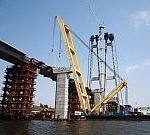 Роботи на флагмані програми «Велике будівництво» йдуть рекордними темпами у цілодобовому режимі. 28 липня плавкран «Захарій» встановив останню секцію прогонової