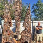 Одесский скульптор Кирилл Максименко создает огромный стилизованный герб Украины из металлолома. Кирилл уже практически завершил работу. Скульптура получается более четырех