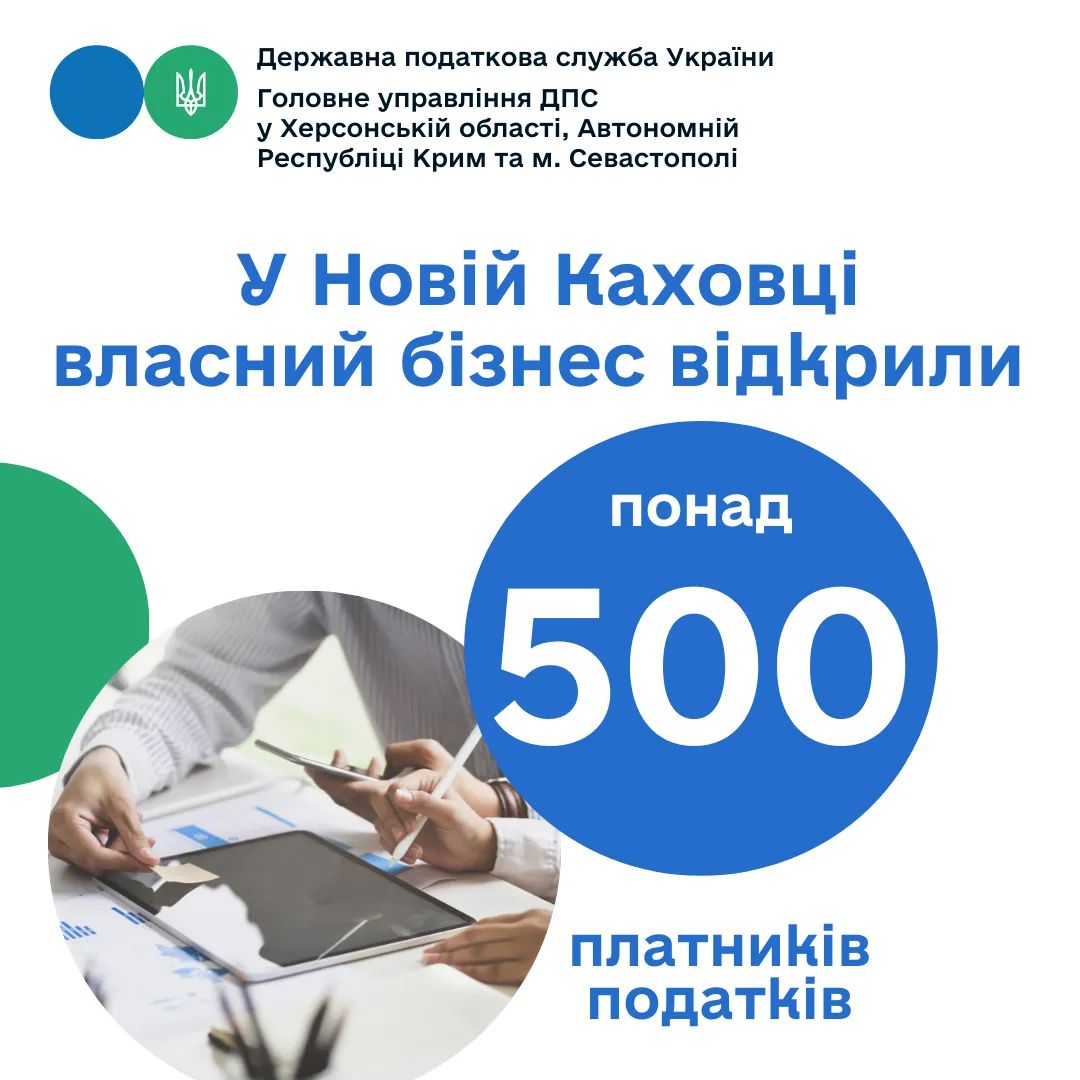Станом на 01 вересня на податковому обліку в Новокаховській ДПІ Головного управління ДПС у Херсонській області, Автономній Республіці Крим та м. Севастополі перебувають 6248 платників податків.