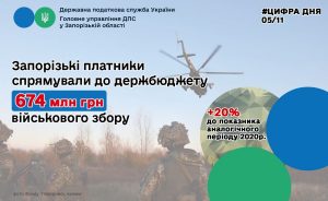 За десять місяців запорізькі суб’єкти господарювання спрямували до державного бюджету 673 мільйони 864 тисячі гривень військового збору. Як повідомив начальник