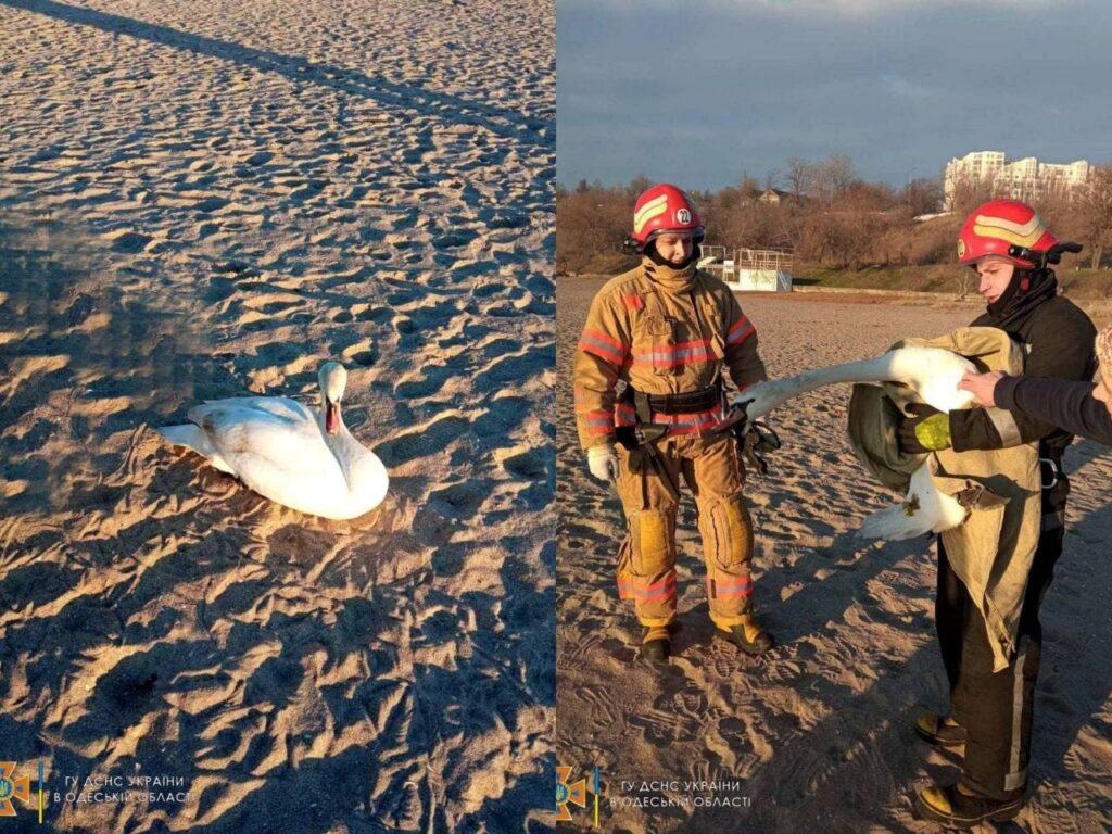 «Рятувальникина пляжі Чорноморська виявили травмованого лебедя завдяки небайдужим громадянам і відправили його в Нью-Васюки (етно-парк), де йому зможуть допомогти».