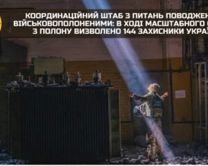 Головне управління розвідки повідомило про здійснення масштабного обміну полоненими. Вдалося звільнити 144 захисники України. З них 95 оборонців “Азовсталі”, 43