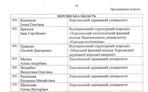 Серед 7 здобувачів з Херсонщини, які отримуватимуть президентські стипендії за високі досягнення у освітній та громадській діяльності, 5 з нашого університету. Це здобувачки ІІІ курсу з різних факультетів – Ілона Біляченко, Катерина Радіонова, Олена Щепелева, Валентина Нетребич, Аліна Мезіна.