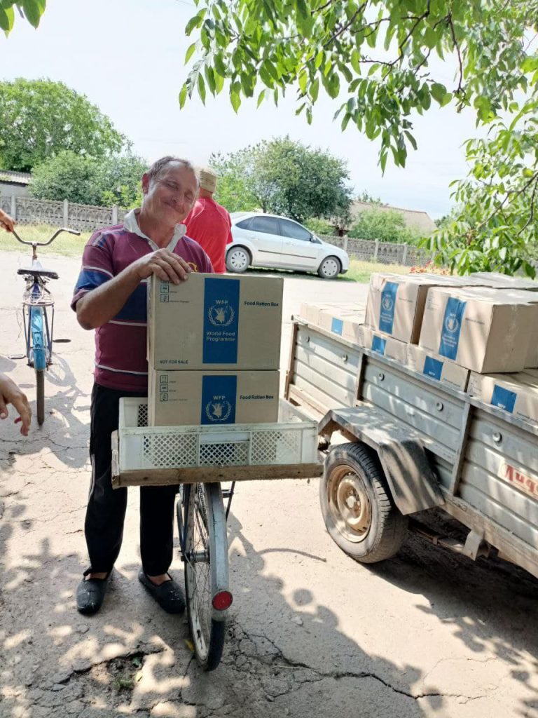 Волонтери БФ «Українці переможуть!» поділились світлинами з одного дня видачі гуманітарної допомоги в селі Урожайне — це село, у Бериславському районі Херсонської області.