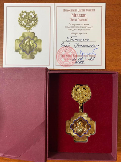 Днями професор кафедри психології Херсонського державного університету Ігор Попович отримав медаль «Хрест Свободи» від Блаженнійшого митрополита Київського і всієї України Епіфанія за жертовне служіння задля збереження Божого дару свободи та незалежності, – повідомляє пресслужба ХДУ.