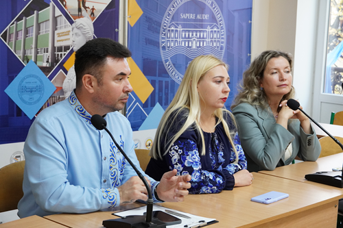 «Юрій Валерійович – наш викладач, який зараз знаходиться в Сполучених Штатах Америки, де реалізує свій персональний науковий ґрант. Ми цим дуже пишаємося, тому що це популяризація наукової, міжнародної діяльності, це й історичні дослідження, які сьогодні, дійсно, актуальні. І це ще раз підкреслює той наратив, що, не зважаючи на те, чи українці знаходяться в Україні, чи поза її межами, важливим є те, що вони говорять, як вони це роблять, як себе позиціонують, як відверто і щиро розповідають про ті злочини, які зараз кояться в Україні. Думка про українців формується, насамперед, на основі того, як позиціонують себе самі українці!», – зазначила проректорка з міжнародної, соціально-гуманітарної та науково-педагогічної роботи Алла Цапів.