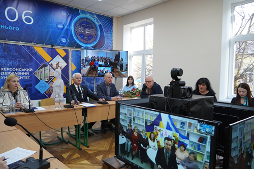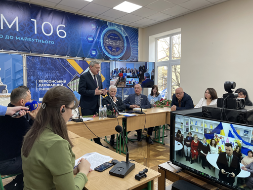 З нагоди важливої історичної події – 106-річчя Херсонського державного університету – у закладі відбулося урочисте засідання вченої ради. На початку хвилиною мовчання вшанували захисників України та мирних жителів, які загинули внаслідок збройної агресії Росії проти українського народу.