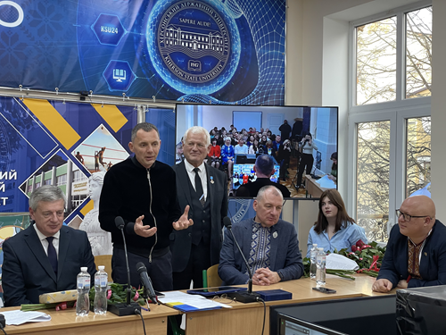 Звертаючись до університетської спільноти, начальник Херсонської обласної військової адміністрації Олександр Прокудін акцентував на тому, що вдруге колектив відзначає річницю в умовах повномасштабного вторгнення, вдруге не на Херсонщині: