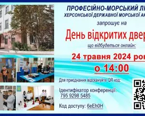 24 травня 2024 року о 14.00 год відбудеться День відкритих дверей Професійно-морського ліцею Херсонської державної морської академії в онлайн режимі