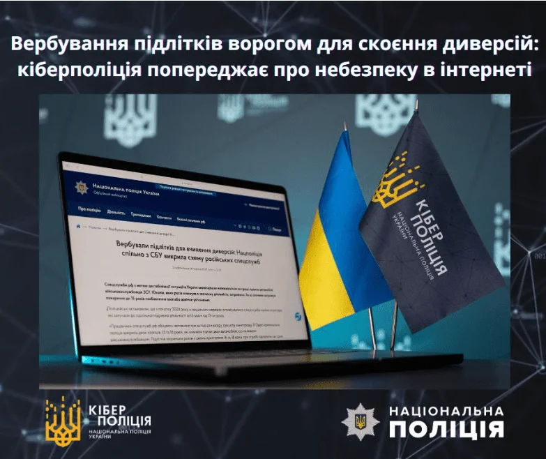 Кіберполіція України інформує про небезпеку вербування російськими спецслужбами для вчинення диверсій, зокрема – підпалів автомобілів українських військовослужбовців.