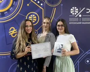 На фото: Олена Чепелюк, ректорка ХНТУ, Вікторія Артеменко, випускниця ХНТУ, Марія артеменко, перша заступниця ректорки ХНТУ. Офіс ХНТУ у Хмельницькому