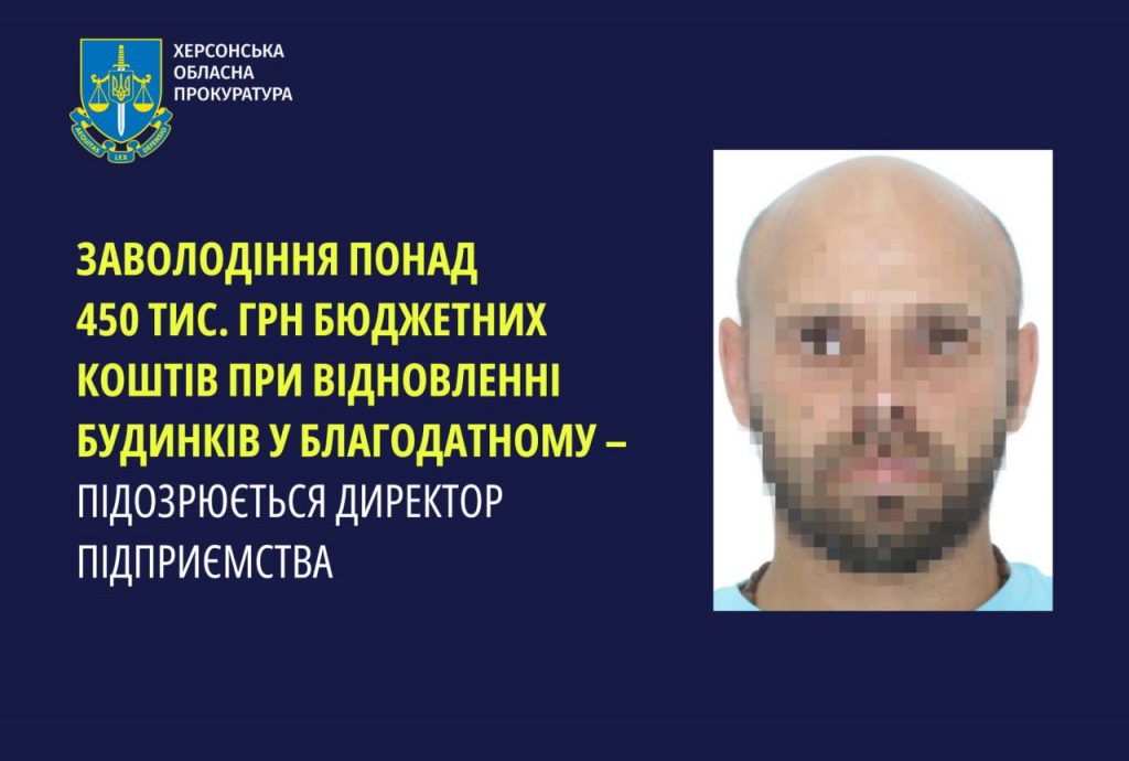 “За даними слідства, у 2023 році одна з сільських рад Херсонського району уклала з підприємством, очолюваним підозрюваним, 11 договорів на виконання капітальних ремонтів житлових будинків, пошкоджених унаслідок збройної агресії в селищі Благодатне”, – зазначили в Херсонській обласній прокуратурі.