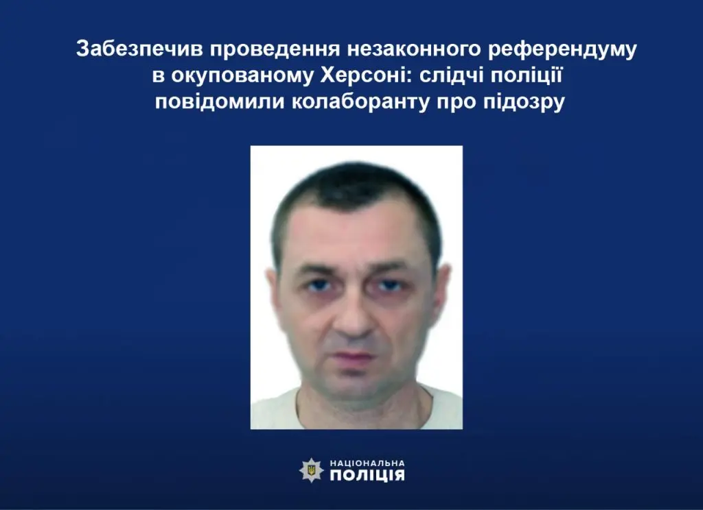 Фігурантом виявився 48-річний житель обласного центру. Під час тимчасової окупації Херсона він добровільно погодився очолити незаконно створену «виборчу комісію» та забезпечив проведення незаконного референдуму на території Дніпровського району, – повідомили в управлінні Служби Безпеки України.