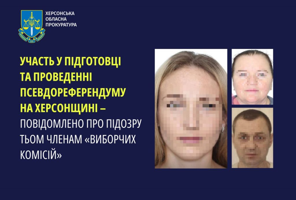 “За даними слідства, у вересні 2022 року підозрювані приєдналися до «виборчих комісій», що діяли на території Херсона, та взяли участь у підготовці та проведенні псевдореферендуму щодо приєднання регіону до складу рф. Двоє з них – в якості «голів комісій», – повідомляє пресслужба Херсоснької обласної прокуратури.
