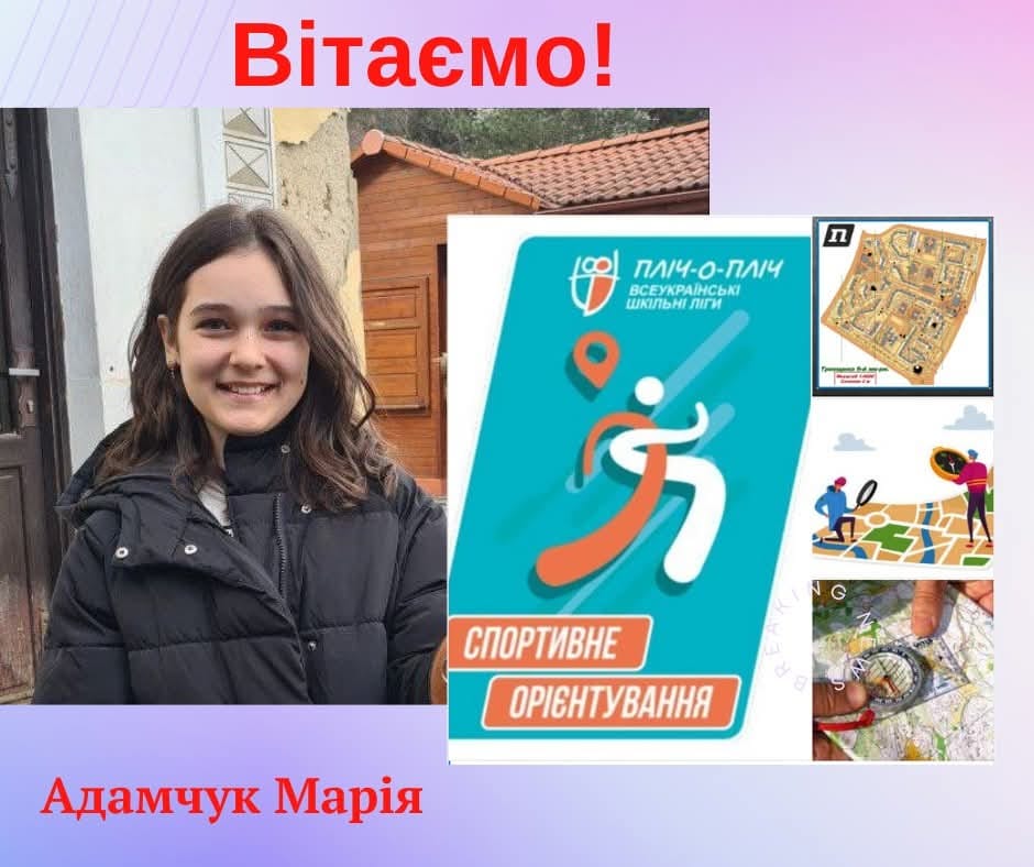 Учениця 6-А класу Першого ліцею міста Нова Каховка Марія Адамчук посіла ІІІ місце в ІІІ (обласному) етапі змагань Херсонської обласної спортивної Шкільної Ліги – Ліги орієнтування спортивного серед учнів 5-6 класів закладів загальної середньої освіти під гаслом «РАЗОМ ПЕРЕМОЖЕМО!» за підтримки Президента України.