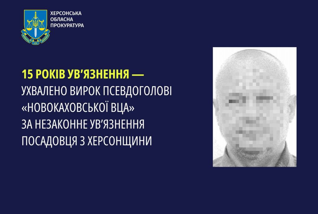 15 років ув’язнення — ухвалено вирок псевдоголові «Новокаховської ВЦА» за незаконне ув’язнення посадовця з Херсонщини.