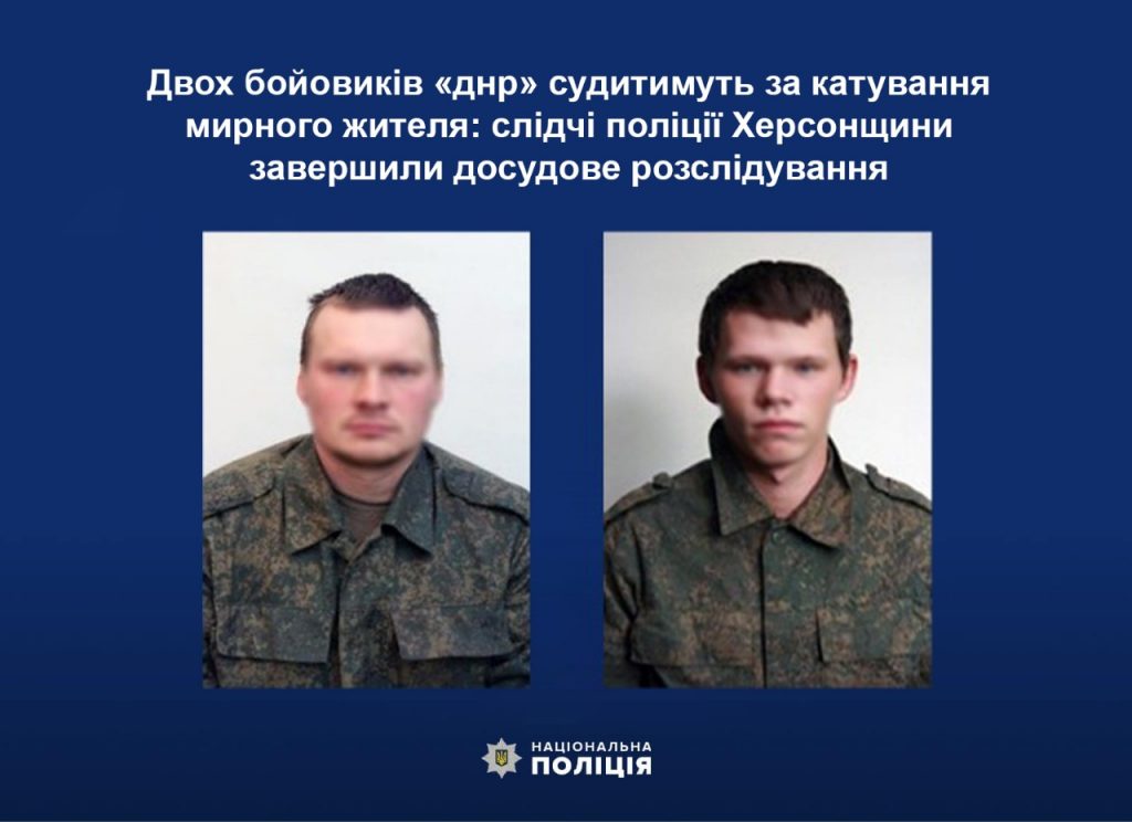 Під час тимчасової окупації правобережжя Херсонської області двоє жителів Донеччини перебували у складі незаконного збройного формування «донецької народної республіки» на Білозерщині. Правоохоронці встановили, що фігуранти у той час піддали тортурам мирного місцевого жителя. Наразі досудове розслідування щодо воєнних злочинців завершене та обвинувальний акт скерований на розгляд суду.