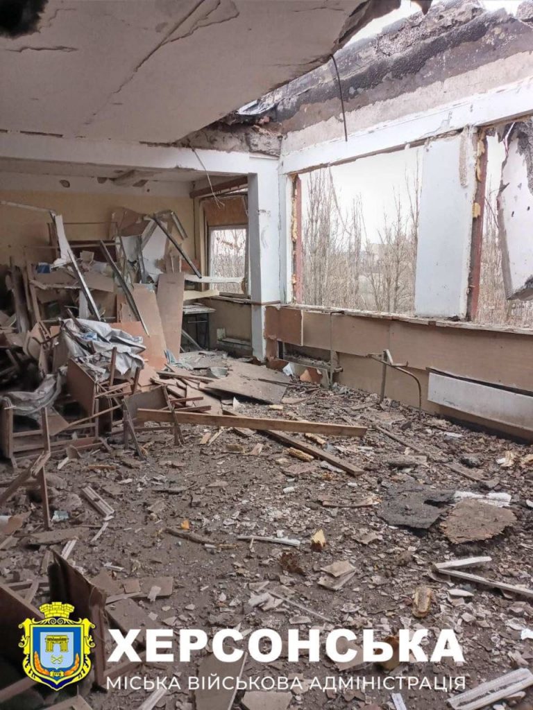 У Дніпровському районі армі ярф обстріляла освітній заклад вночі: пошкоджено стіни, двері, вибито вікна.