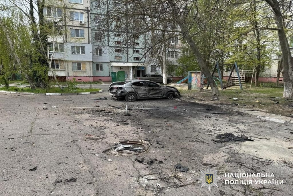 У Дніпровському районі Херсона внаслідок скидання вибухівки з безпілотника пошкоджено багатоквартирний будинок та постраждав екіпаж управління патрульної поліції. Двоє поліцейських віком 33 і 38 років дістали контузії. Службовий автомобіль зазнав пошкоджень.