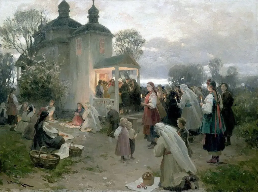 Особливої уваги заслуговує робота Миколи Пимоненка «Великодня заутреня», з якої починається огляд великодньої експозиції.