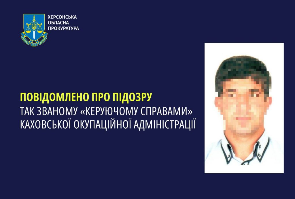 За процесуального керівництва Херсонської обласної та Каховської окружної прокуратур так званому «керуючому справами» Каховської окупаційної адміністрації заочно повідомлено про підозру у пособництві державі-агресору (ч. 1 ст. 111-2 КК України), – повідомила пресслужба установи.