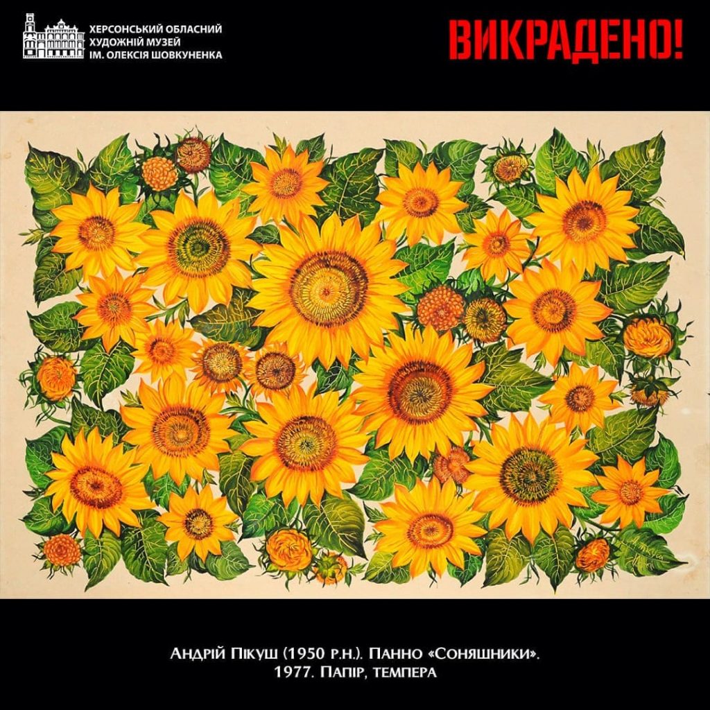 З Херсонського обласного художнього музею імені Олексія Шовкуненка під час російської окупації міста було викрадено унікальний твір українського мистецтва — декоративне панно «Соняшники», створене Заслуженим майстром народної творчості та Народним художником України Андрієм Пікушем.