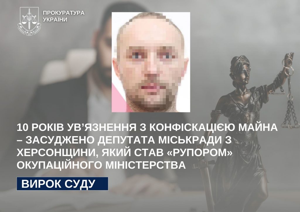 Суд встановив, що Шевченко Олександр Олександрович, 23 березня 1986 р. н., уродженець Мелітополя Запорізької області, мешканець Нової Каховки, депутат Новокаховської міськради від партії «Слуга народу», з березня 2023 року працює в окупаційному міністерстві сільського господарства та рибальства Херсонської області. Його посади там – спочатку головний спеціаліст, а потім начальник відділу взаємодії з засобами масової інформації.