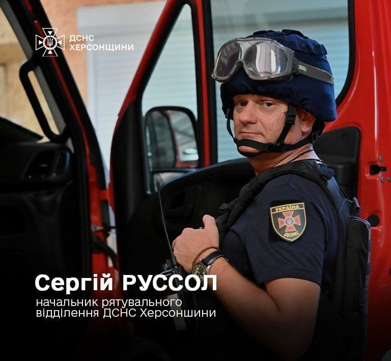 Сергій Іларіонович Руссол — начальник рятувального відділення групи рятувальних робіт АРЧ РЗСП, герой без зброї, який рятує життя в умовах війни. Закінчив державну агротехнічну академію, а потім академію цивільного захисту у Харкові. Працює рятувальником із 1998 року.