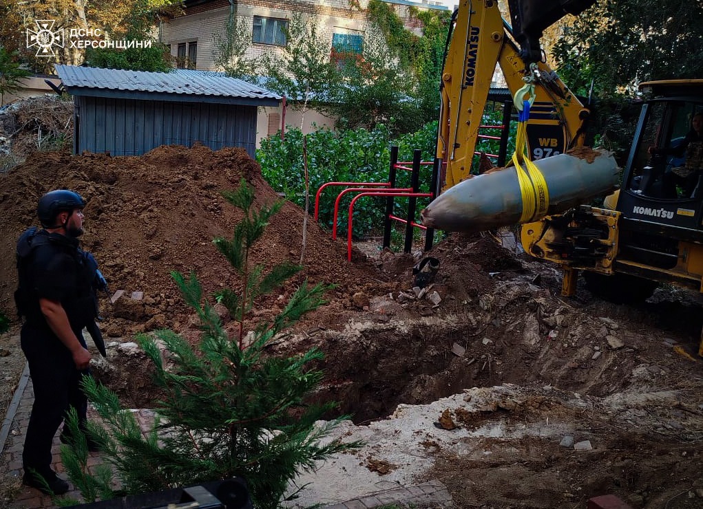 У Херсоні знешкодили авіабомбу, яка не розірвалася під час чергового обстрілу російської армії. Росіяни обстрілюють житлові квартали різними видами зброї, у тому числі касетними боєприпасами (КАБи), завдаючи серйозної шкоди цивільній інфраструктурі.