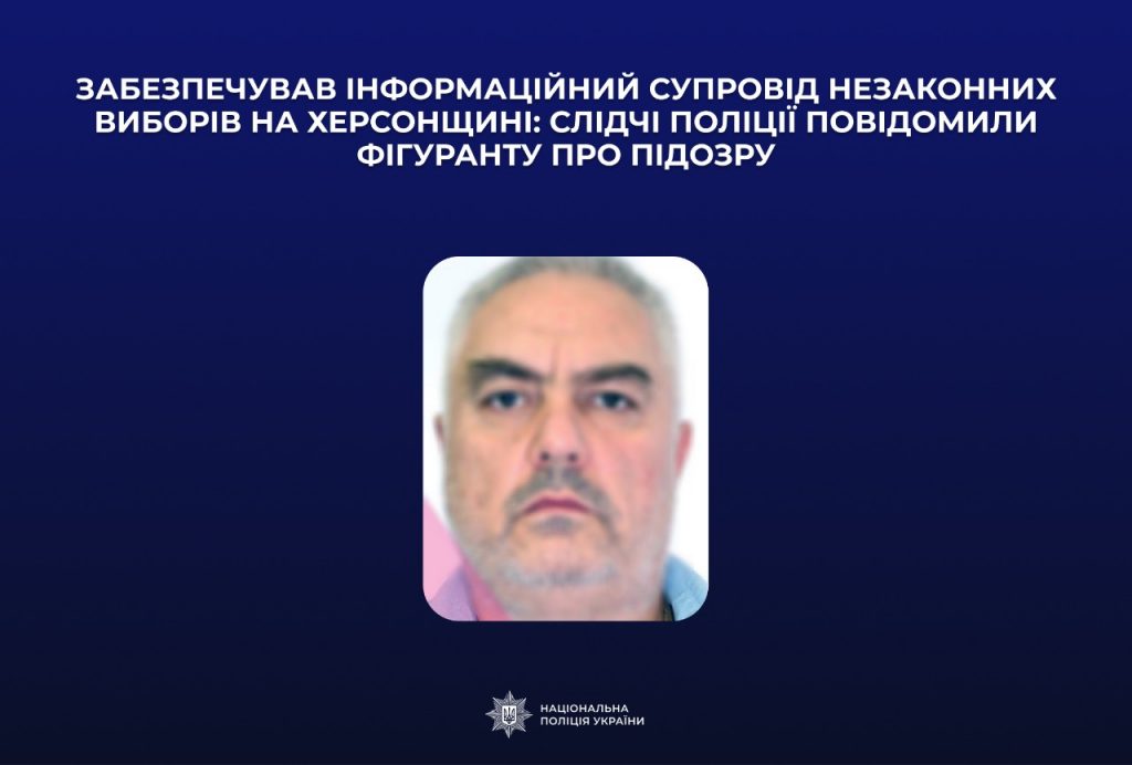 Зловмисником є 52-річний херсонець, який нині перебуває на тимчасово окупованому лівобережжі області. У 2023 році він здійснював інформаційний супровід проведення організованих росією незаконних виборів. Наразі йому заочно повідомлено про підозру в колабораційній діяльності.