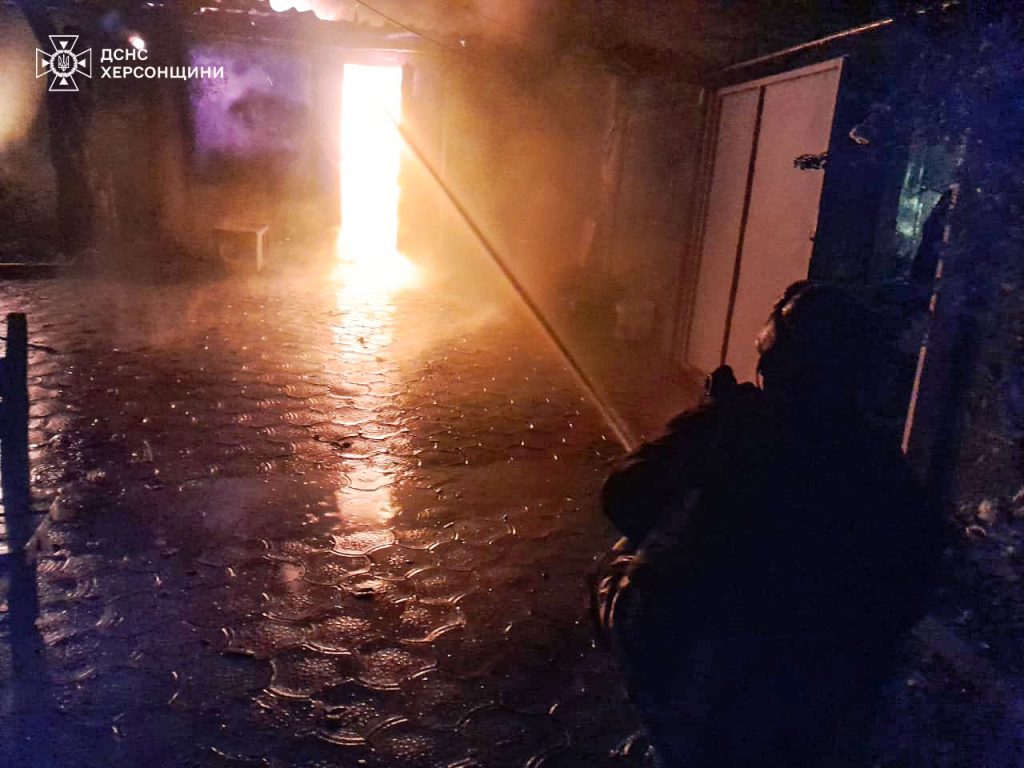 Сьогодні під ранок у місті, внаслідок чергового артилерійського обстрілу російських військ, загорілася господарча споруда. Про це повідомляє Головне управління ДСНС України в Херсонській області.