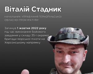 Захисник України Віталій Стадник з позивним «Прокурор» загинув 1 жовтня 2022 року на полі бою під час контрнаступу на Херсонщині.